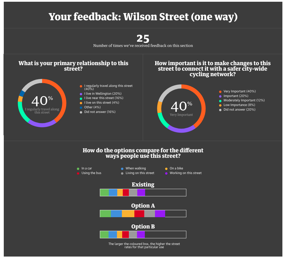 Options for both sections of Wilson Street were put forward for community feedback in September 2017. See the feedback on the options for upper Wilson Street and lower Wilson Street.